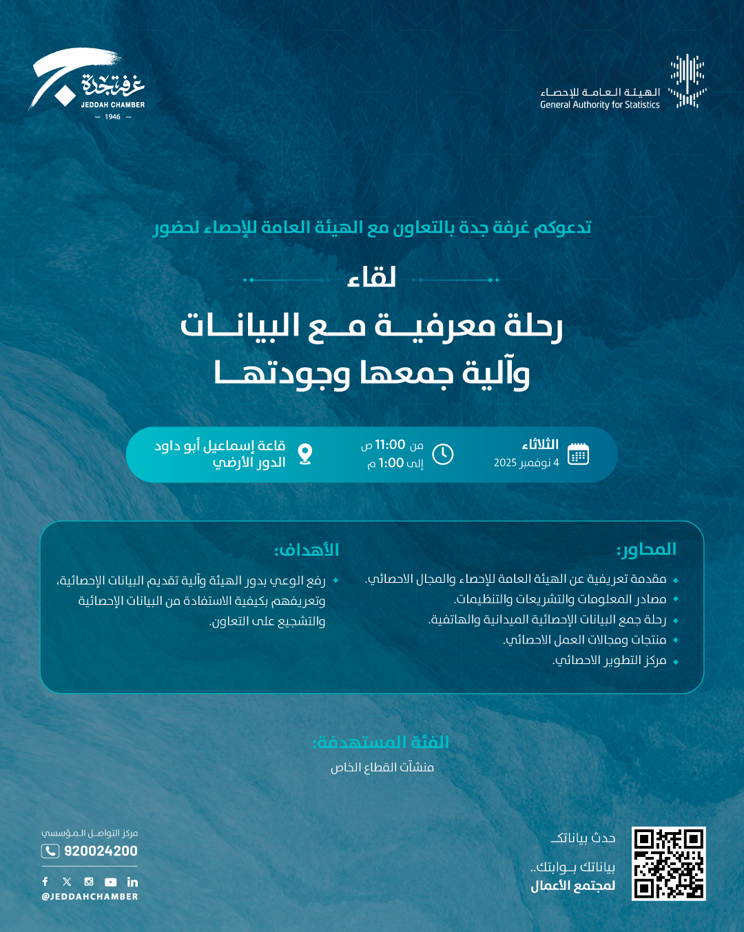 لقاء رحلة معرفية مع البيانات وآلية جمعها وجودتها - غرفة جدة