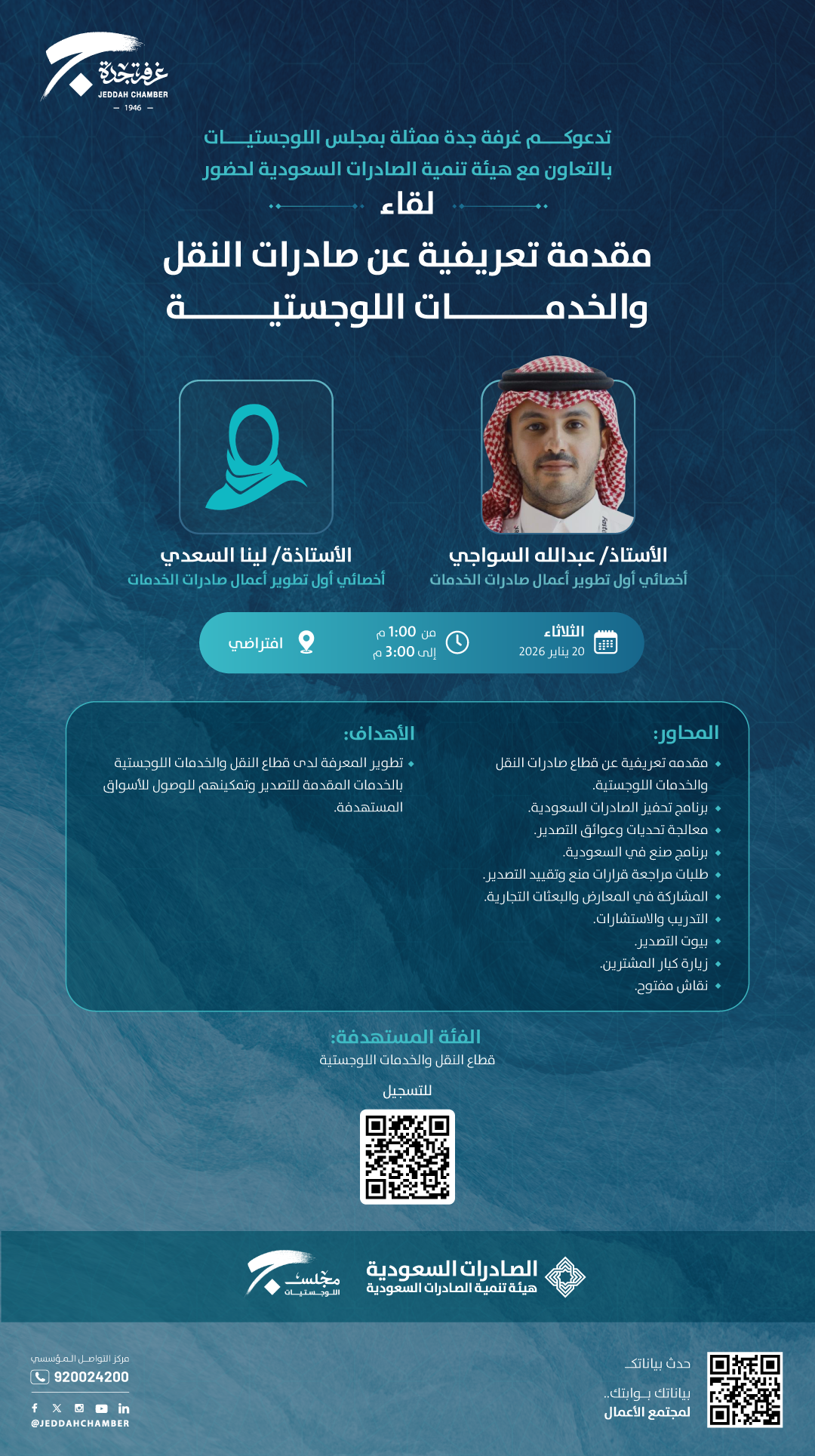 لقاء مقدمة تعريفية عن صادرات النقل والخدمات اللوجستية - غرفة جدة